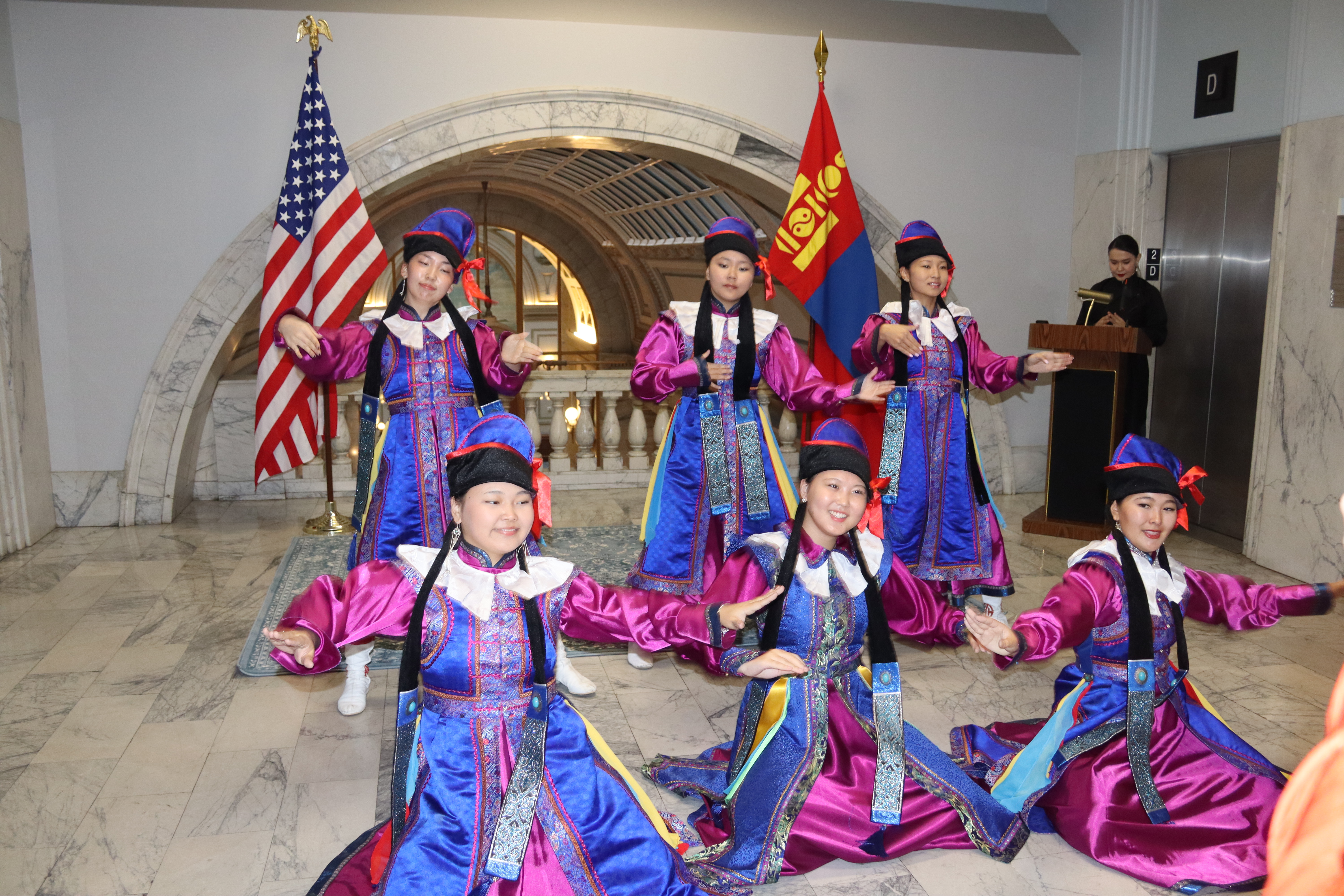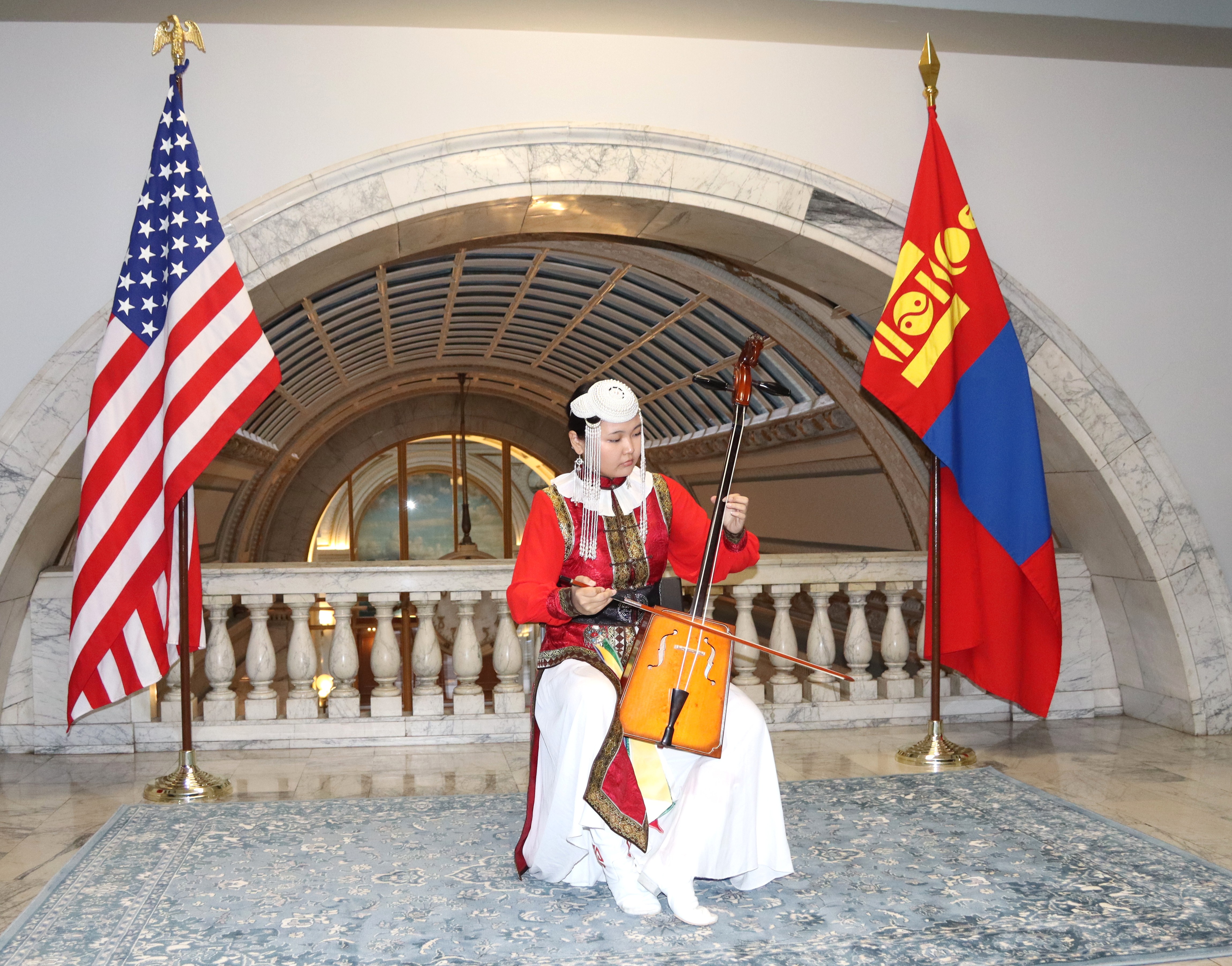 Students from the “Bi Mongol” School operating under the “Ger” Center—children who are growing up far from their homeland yet continue to value and learn their national culture and traditions—along with Mongolian children from Alameda, delighted attendees with performances featuring the morin khuur, contortion, and traditional Mongolian dance.